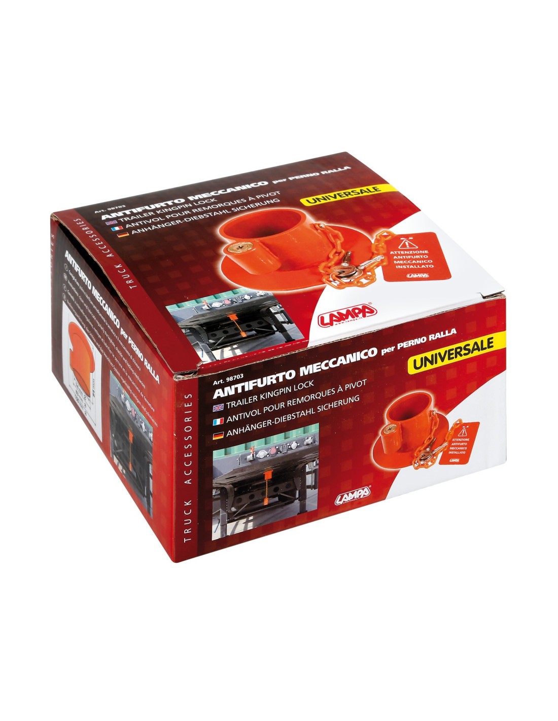 - LAM98703 Descriere: Antifurt blocare pivot cuplare semiremorca camion. Pivot de Ø 74 mm. Universal.