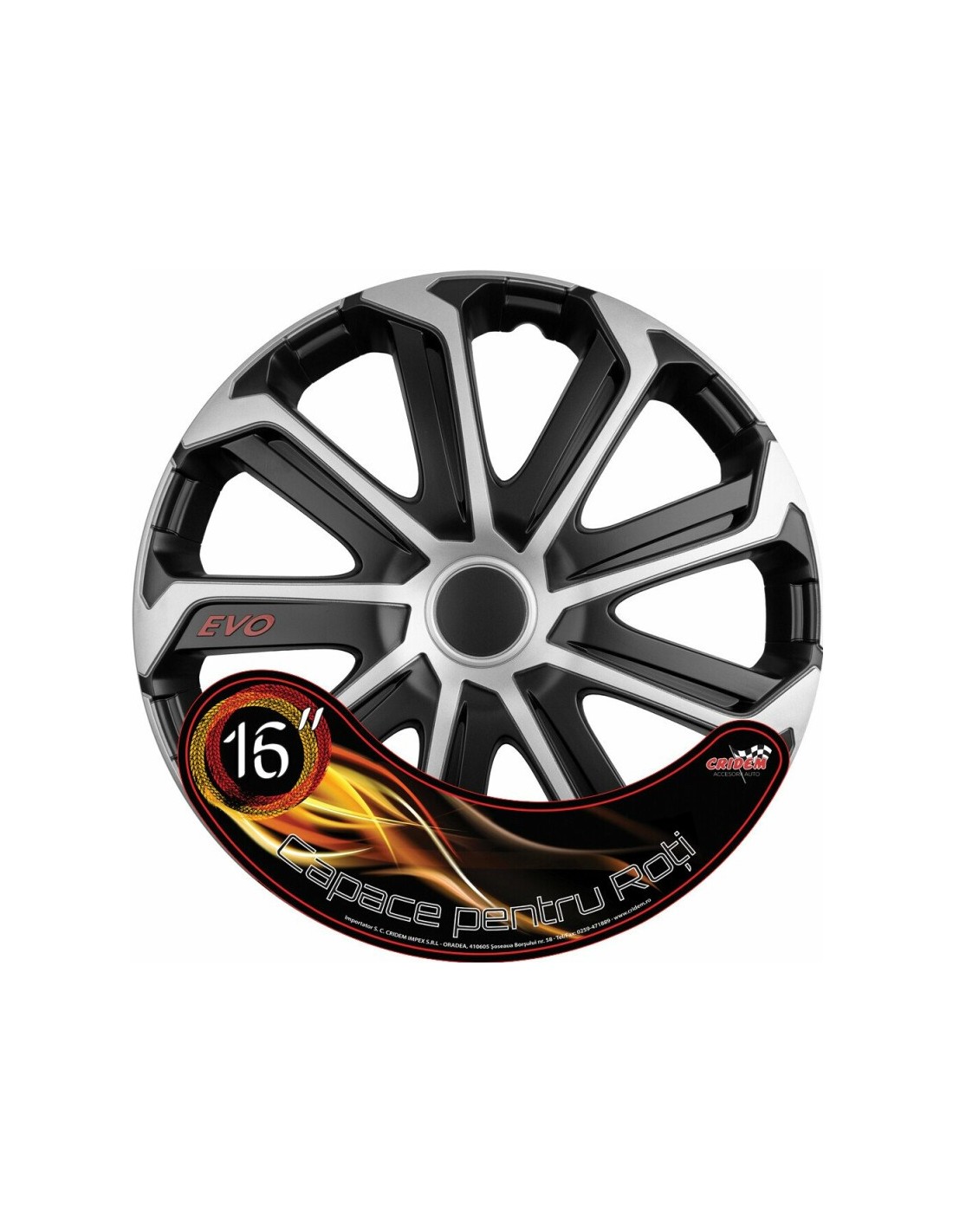 Set capace roti auto Cridem Evo 4buc - Negru/Argintiu - 16"'