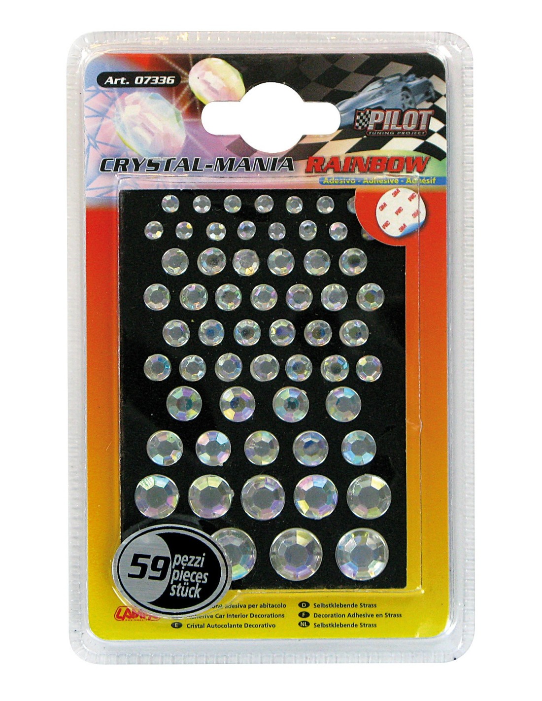 lam07336 culoare: transparent descriere: decoratiuni interioare crystal mania prevazute cu adeziv 59 buc. pentru decorarea grilelor de aerisire a tabloului de bord consolelor ... dimensiuni asortate.